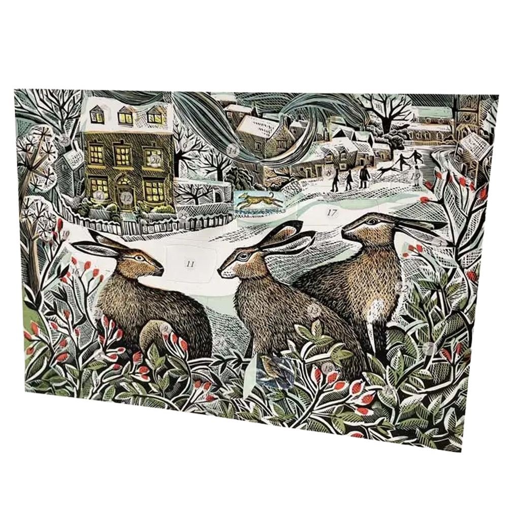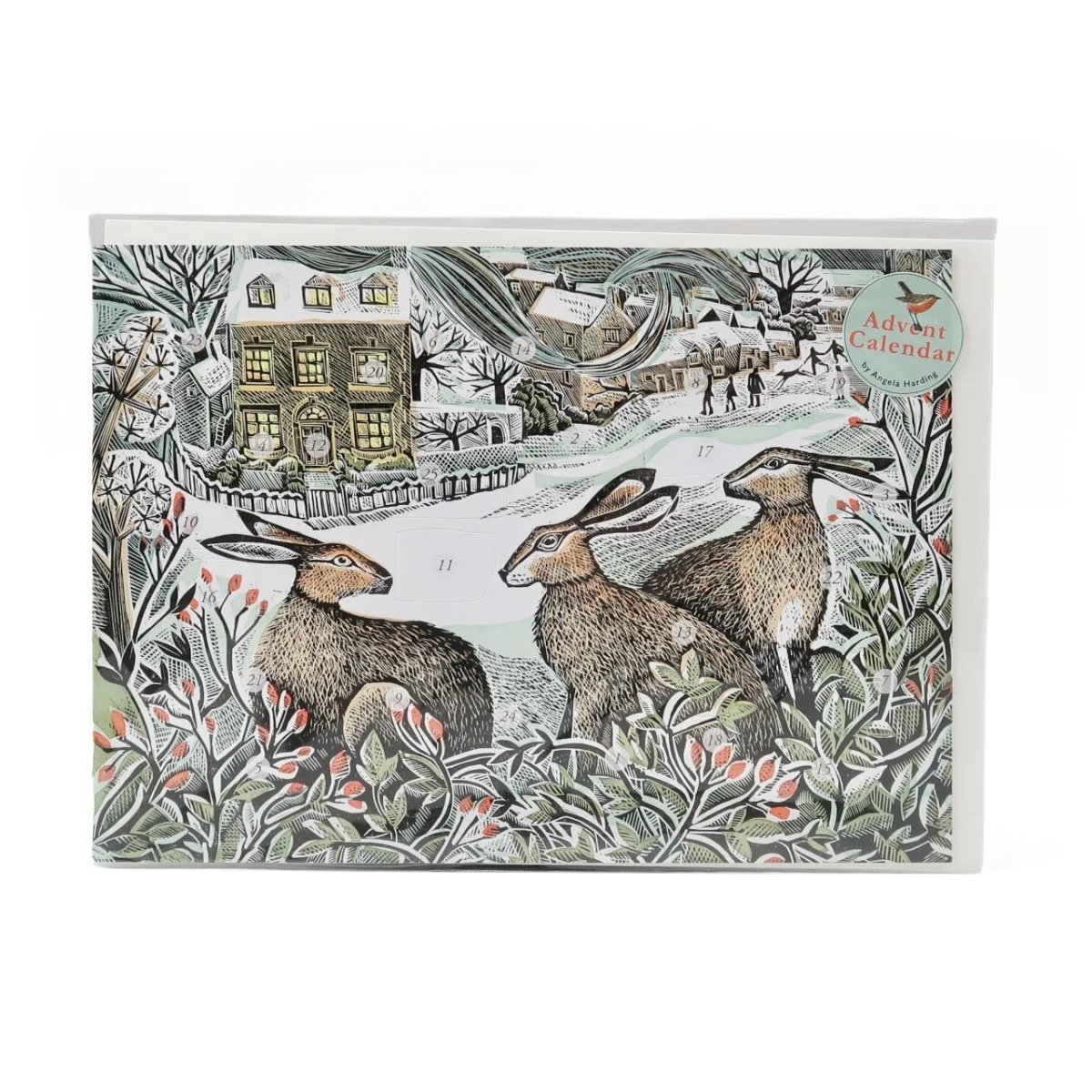 We Three Hares Advent Calendar Greetings Card | Christmas Advent Card & Envelope