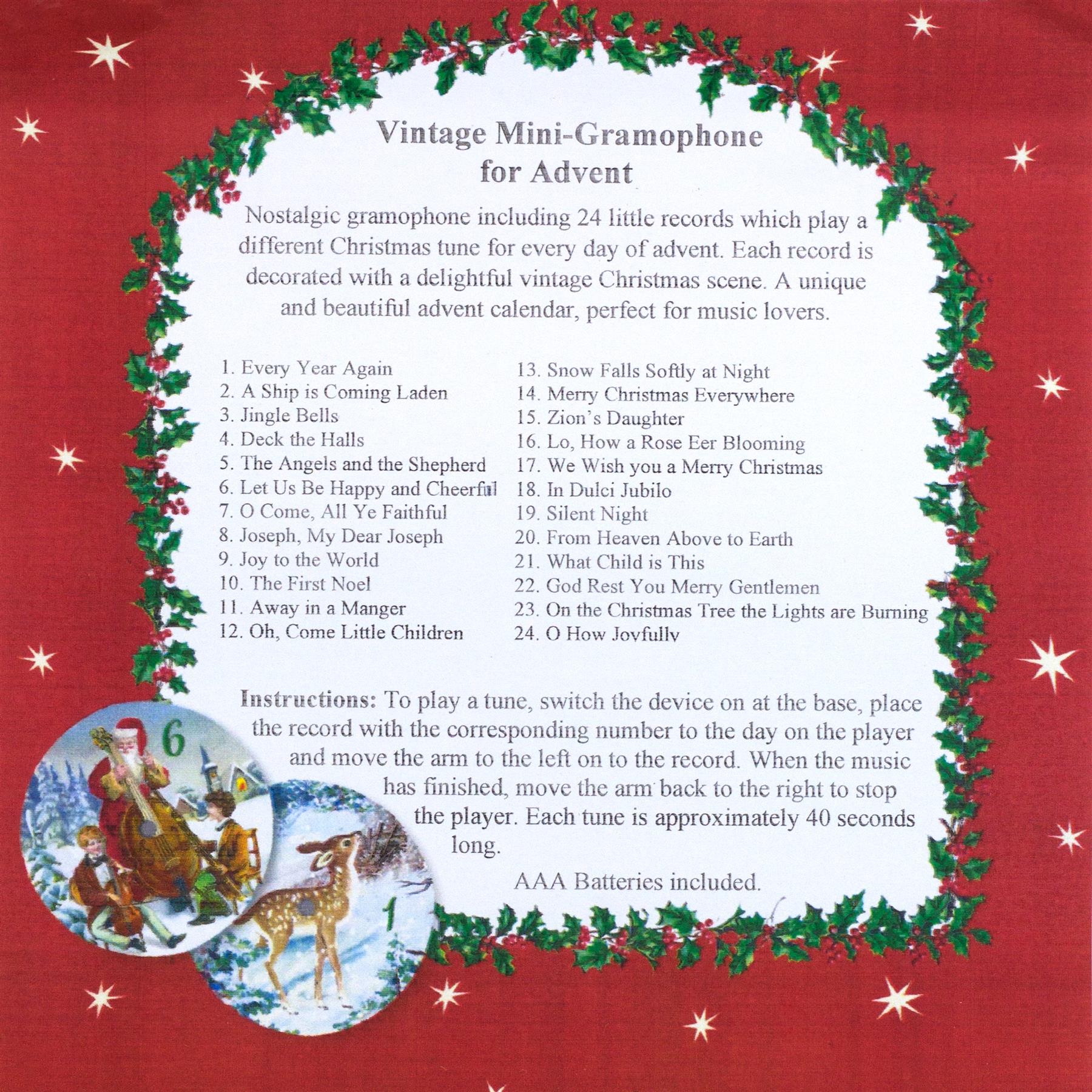 MUSICAL ADVENT CALENDAR: A unique and beautiful Christmas advent calendar. Our nostalgic mini gramophone musical advent calendar has 24 little records which play a different Christmas tune for every day of advent