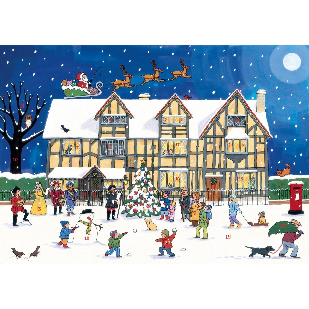 Christmas at the Old Town House, the log fire is burning, the tree is decorated, carols fill the air and the snow is falling. Everyone is getting ready for Christmas. Find out what is going on in the Old Town House behind each window.