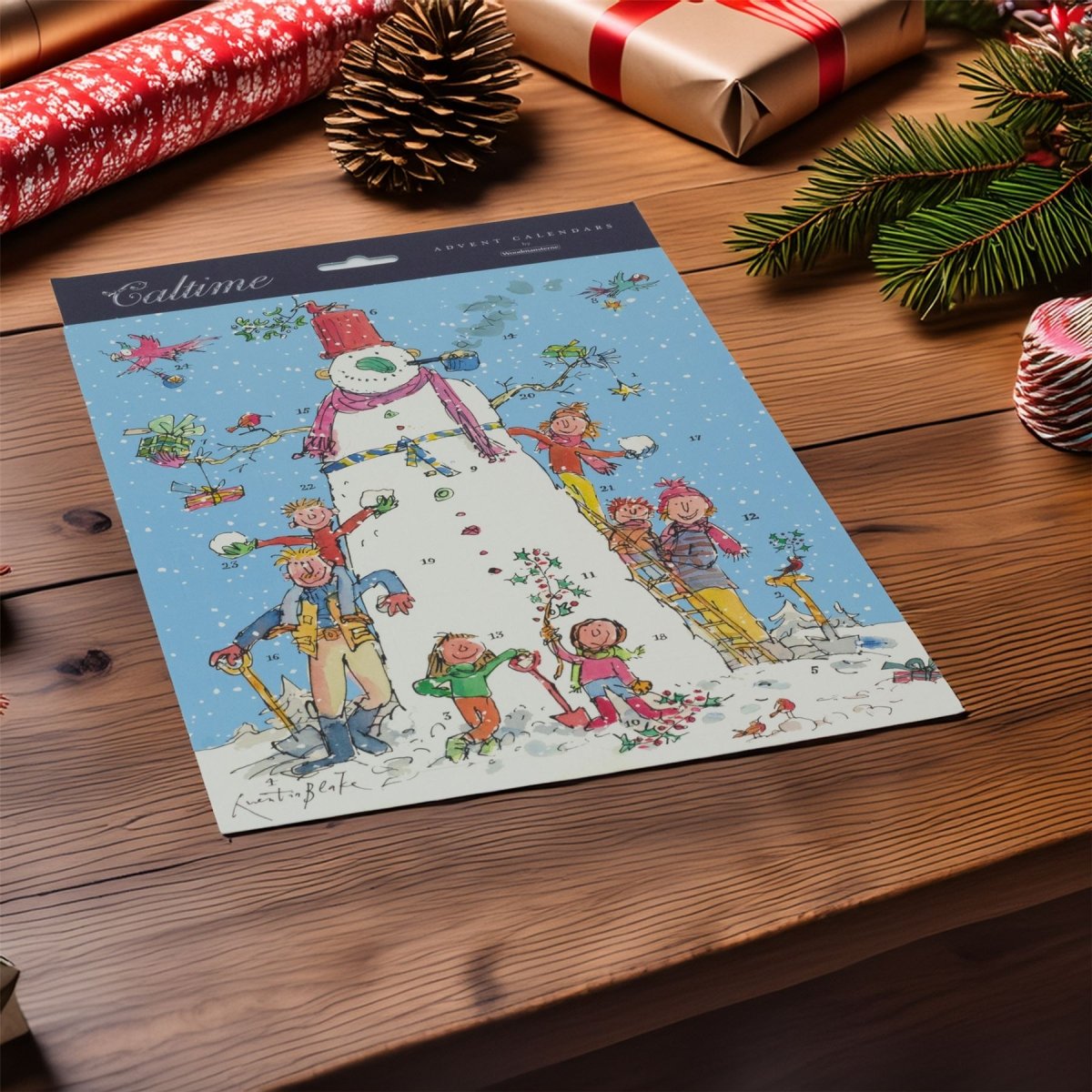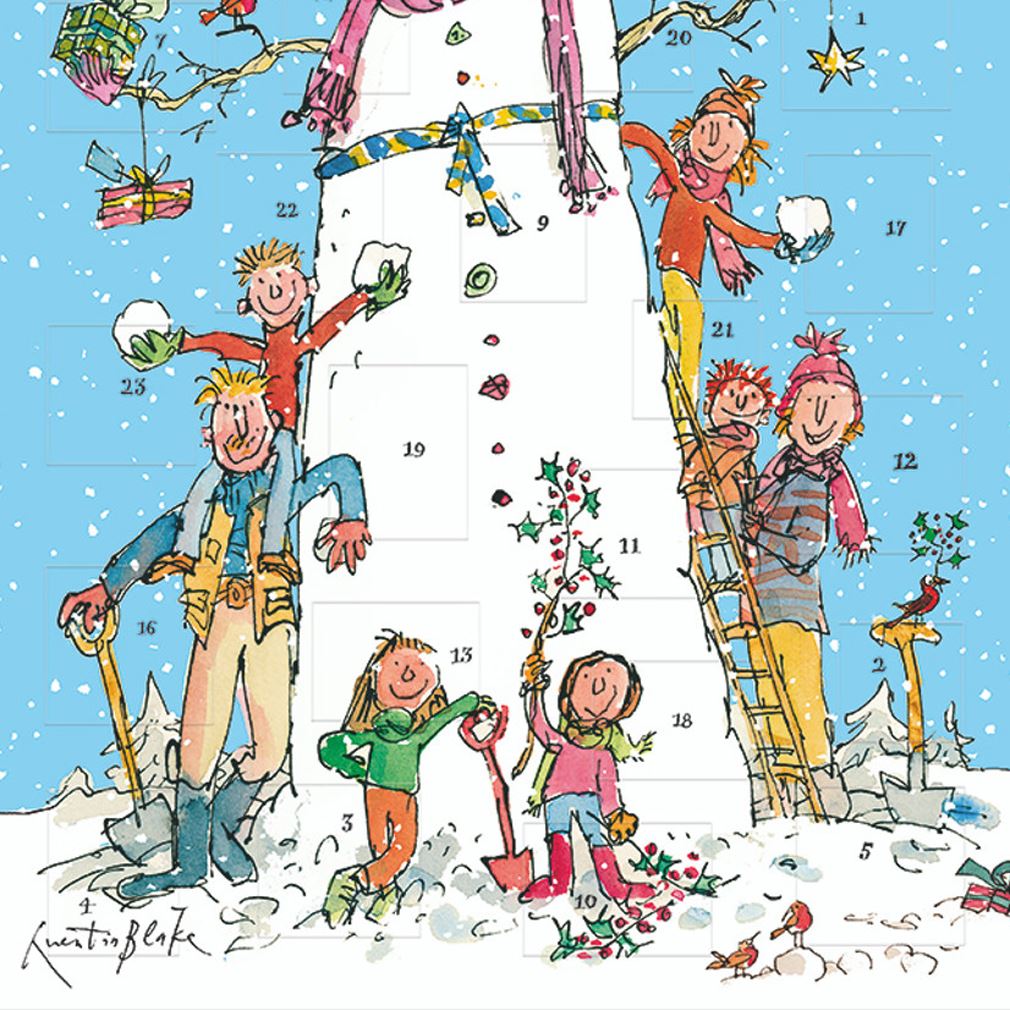 Celebrate the countdown to Christmas with this whimsical Quentin Blake Frosty the Snowman advent calendar, featuring a gigantic grinning snowman surrounded by joyful families in the snow