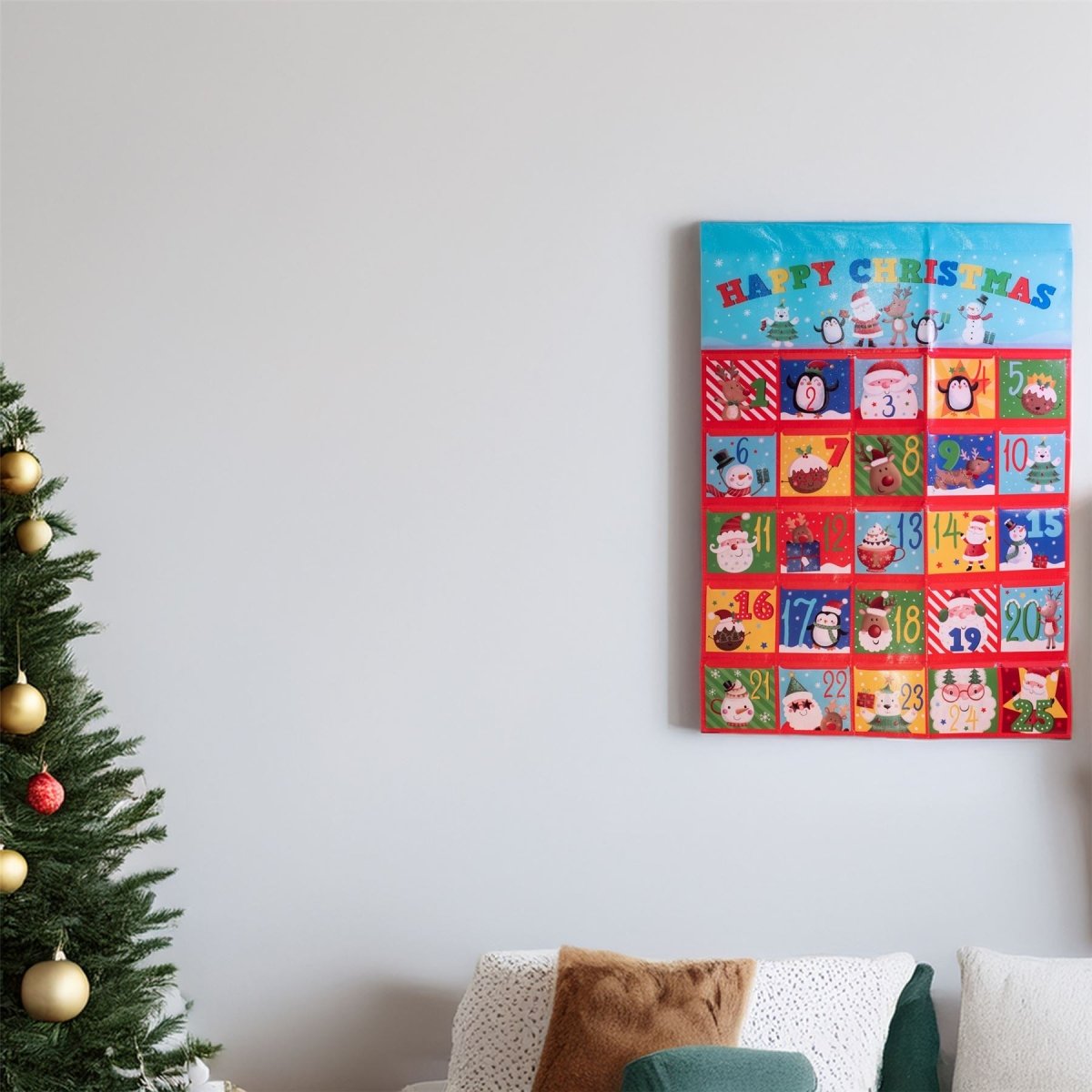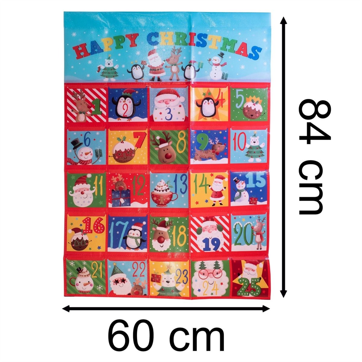 CHILDRENS ADVENT CALENDAR | Specially designed with children in mind, each pocket features a cute festive character. The "Happy Christmas" message at the top adds an extra sprinkle of festive magic
