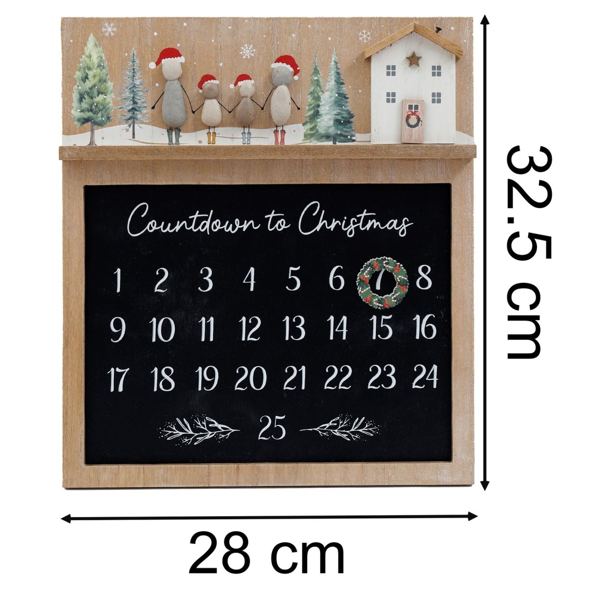 CHRISTMAS ADVENT CALENDAR | Embrace the festive season with this charming advent calendar plaque. Adorned with a sweet pebble family and wooden house motif, this calendar isn't just functional-it’s a piece of decor that celebrates family and festive traditions