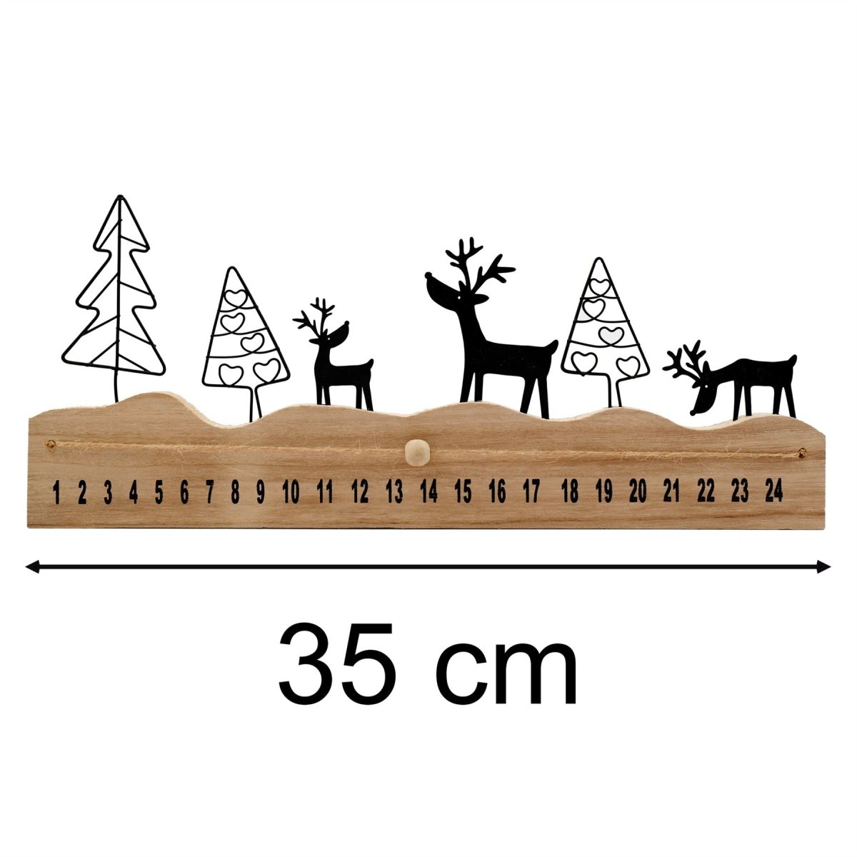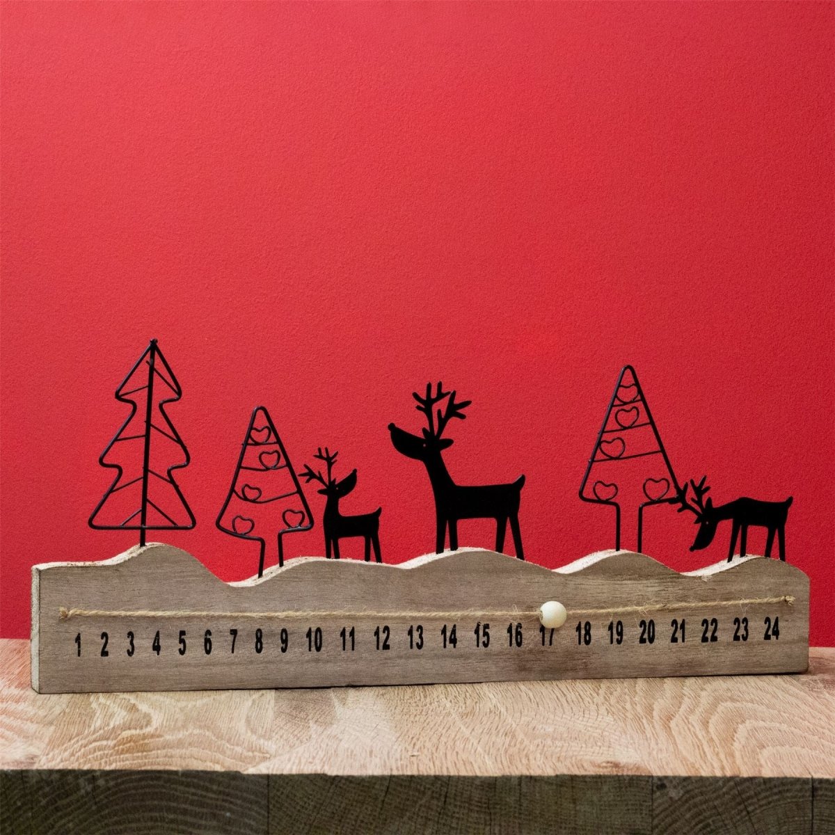 Embrace the festive spirit with our Reindeer Scene Christmas Advent Calendar. This reusable calendar features a captivating Alpine forest design with a black metal reindeer family, set on a wooden base. With its interactive sliding bead system, it's a delightful way for the entire family to countdown to Christmas
