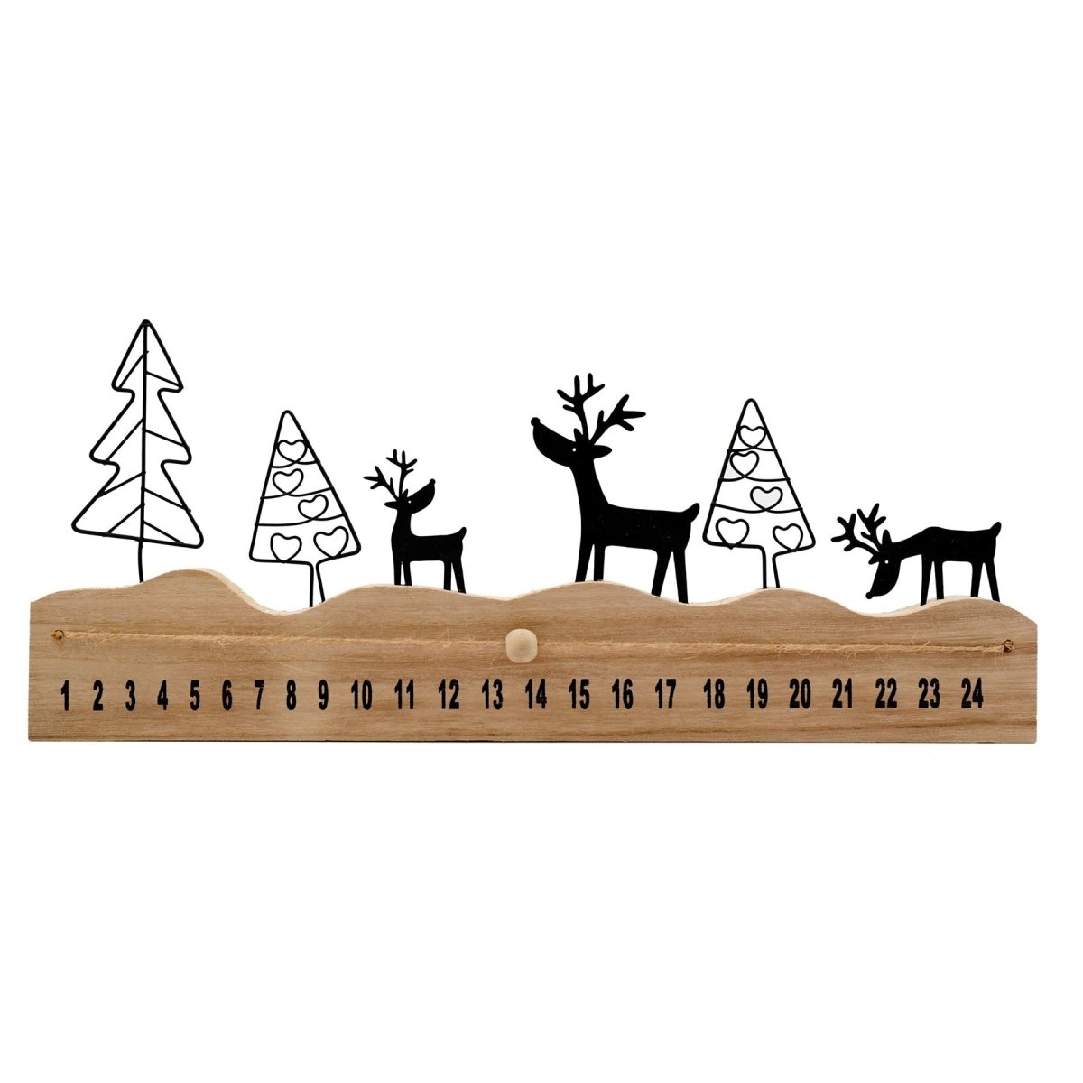 REINDEER ADVENT CALENDAR | Celebrate the festive season with our charming Reindeer Scene Christmas Advent Calendar. This calendar features an enchanting black metal reindeer family set against a forest backdrop, all elegantly mounted on a wooden base. A perfect addition to your holiday decor
