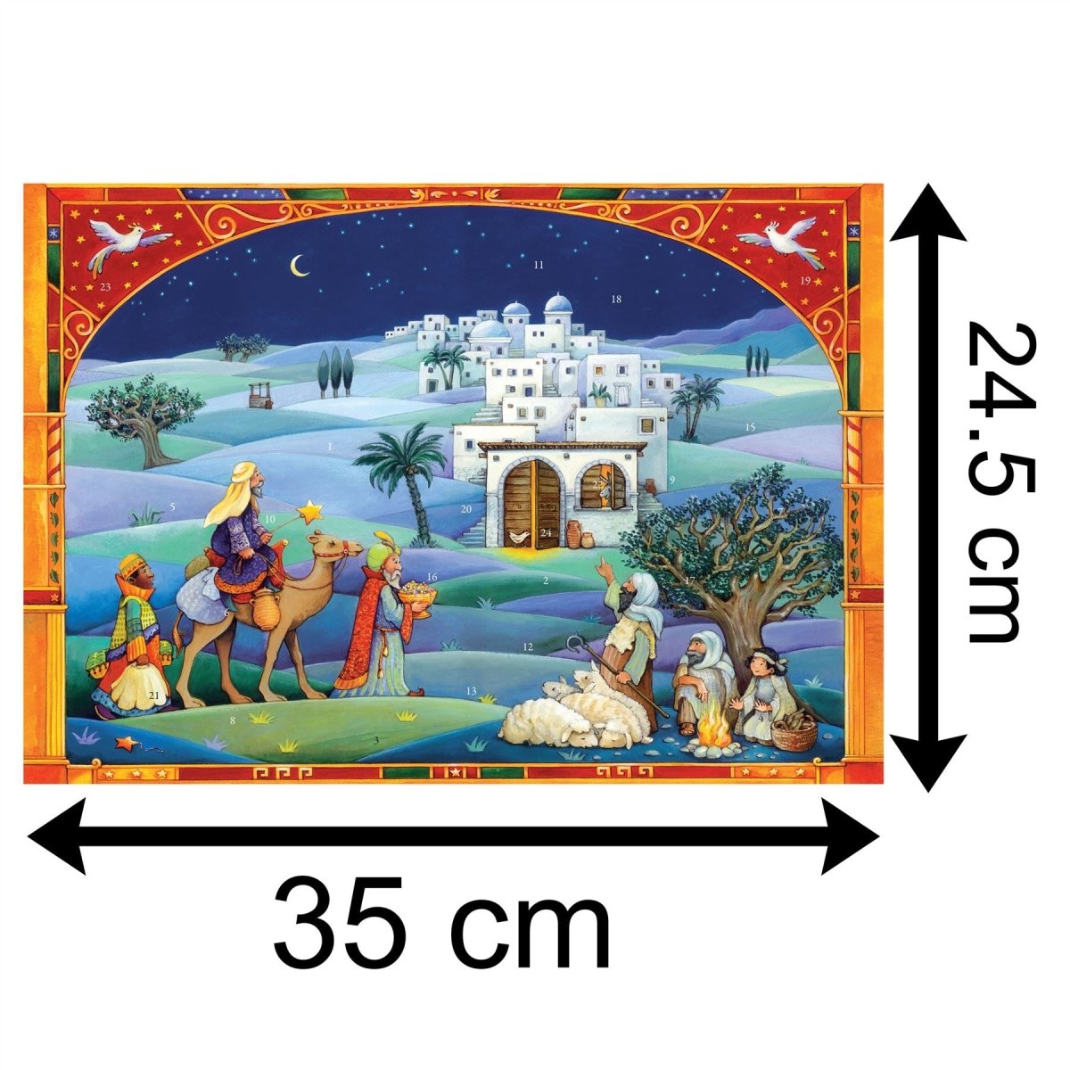 ADVENT CALENDAR NATIVITY: This timeless classic Advent calendar measures approximately 35cm x 24.5cm