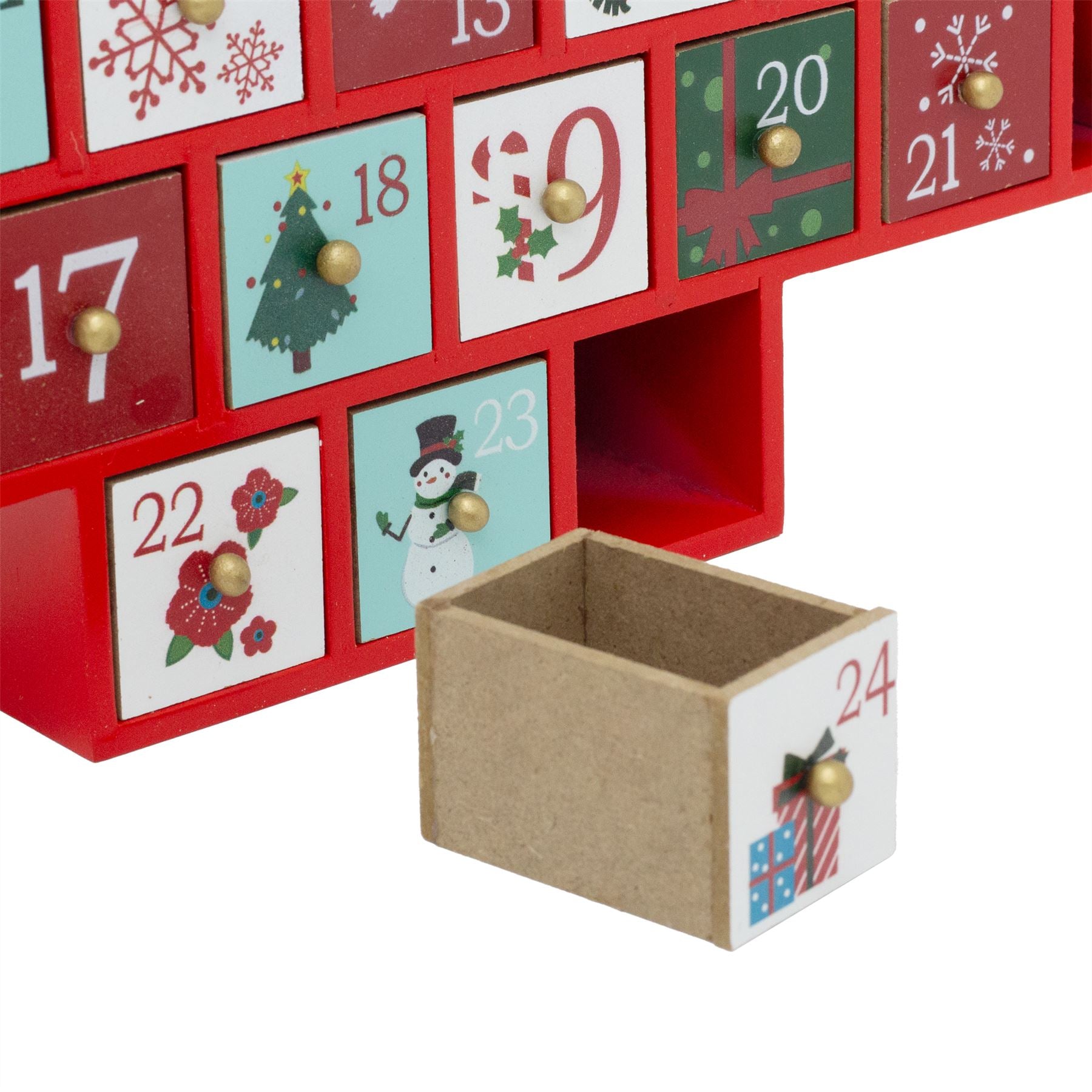 Countdown to Christmas in festive style with this charming red wooden advent calendar. Featuring 24 drawers, it’s perfect for filling with sweets, toys, or treats