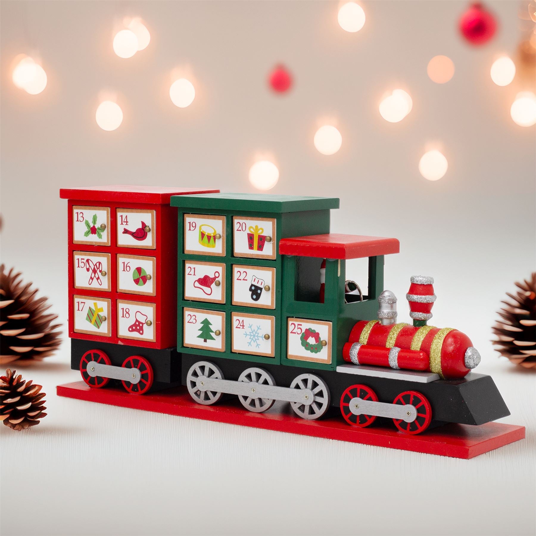 All aboard the Santa Express! This charming wooden train advent calendar makes counting down to Christmas a magical journey filled with sweets, surprises, and festive joy